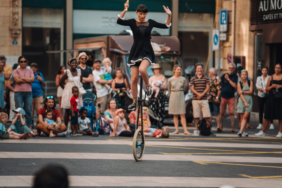 Circus Follies : un duo italo-argentin plein de charme, qui a transporté le public dans l’ambiance des années 20, avec des numéros de cirque spectaculaires, jusqu’à une finale impressionnante sur monocycle girafe que la protagoniste conduit avec un pied.