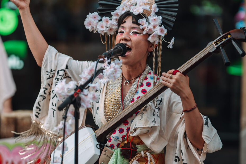 Mitsune : entre tradition japonaise et folie psychédélique, leur performance visuelle et musicale a surpris et émerveillé les festivalières et les festivaliers.